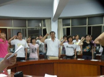 最后张华东书记代表系党总支向按期转正的30名同志表示祝贺,并提出四点希望:要一以贯之地学习党的理论知识,做坚定地马克思主义者;要一以贯之地践行党员的先进性,争做各条战线的先锋;要一以贯之按照学校要求,我系党总支积极开展毕业生党员教育活动。2010年6月18日晚,作为毕业生党员教育的重要活动之一,毕业生党员重温入党誓词活动如期在外语系二楼会议室如期开展。外语系党总支书记张华东、副书记牛爱之、学生党支部书记、全体毕业生党员参加了本次活动。