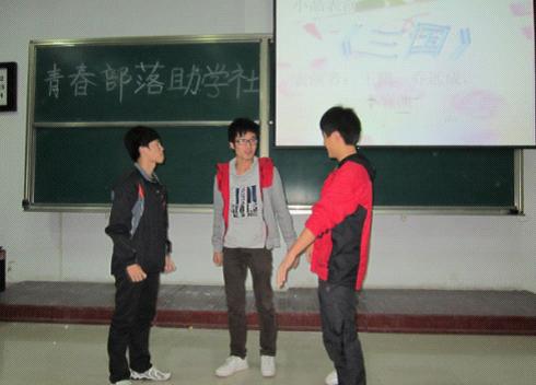 青春部落助学社于2011年11月19日上午9时30分至11时在7教105教室举行了助学活动,此次活动是娱乐与学习并举,活动形式多样,让同学们在娱乐中学习,学习中娱乐,打破了以往的单一助学活动方式,并且以别样的方式全方位的宣传了本社团特色,活动的成功举办提高了社团人员的信心和积极性,为以后助学活动的开展打下了良好基础。