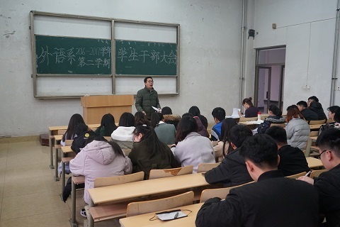 为了加强学生干部工作能力,强化学生干部的责任意识,2月19日,外语系于在1号教学楼107教室召开全体学生干部大会。外语系全体辅导员老师、各班班团及学生会干部参加此次会议。