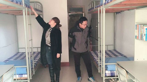 我系历来高度重视宿舍卫生工作,此次重点对大一、大二、大三宿舍卫生状况进行了检查。马老师着重检查了洗手池下方、阳台拐角、橱柜上层缝隙等卫生死角。同时刘老师也检查了学生的军被状况以及屋内电线电路等的安全状况。