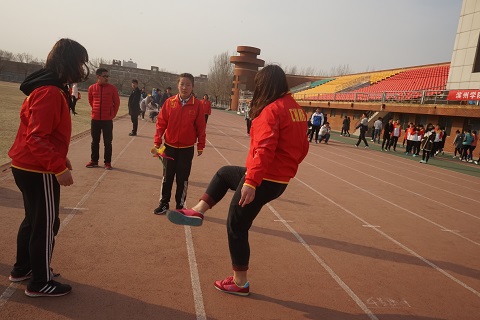 活动伊始,由校网通社工作人员宣布比赛规则,简单介绍了开场活动和主题活动,并希望同学们能在游戏中公平竞争,寓学于乐。随后,各院系参赛选手展开激烈角逐。我系选手在第一游戏环节中化为“早起的鸟儿”投入到寻找隐藏在操场各处的“虫子”纸条比赛中,在规定时间内不仅找到了本系的纸条,并且帮助教师教育学院找到了相应的纸条,体现了外语系学生良好的道德风尚。在第二游戏环节中,参赛选手通过赛跑、接力的形式合作完成跳绳、踢毽子、猜谜等项目,充分考验了外语系参赛选手之间的合作意识及能力。最后,由主持人宣读了各院系成绩及所获奖项,外语系获得第十名的佳绩。