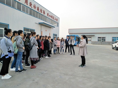 为帮助同学们拓宽视野,了解外贸企业。3月15日,外语系组织到滨州春星服饰有限公司参观学习。外语系主任孟丽华,教师王秋英、张桂芝、相春燕及2015级商务本科一班全体学生一同参观。