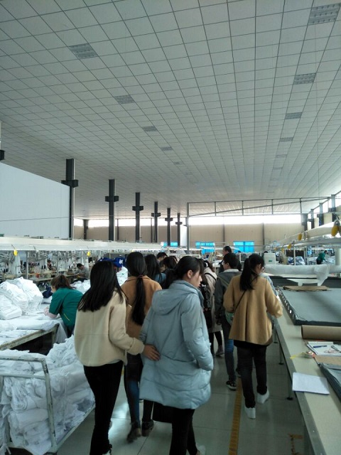 首先,公司讲解人员给同学们介绍了本公司是一家集出口针织服饰、印花、绣花、针织光坯布等产品专业生产加工的中外合资经营企业。随后,在技术人员的陪同下,同学们参观了工作车间和仓库,并向同学们讲述了一件成衣的全部制作过程及现场参观工人示范,让同学们了解到了工人的“半机械化”操作模式和主要出口日本成衣的装箱过程。最后,大家合影留念,为本次企业参观画上了圆满的句号。