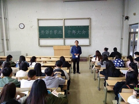 为提高同学们的纪律意识,规范同学们的行为。4月27日,外语系于1号教学楼107教室召开学生干部大会。外语系学生会全体成员及2014级、2015级、2016级全体班级干部参加此次会议,学生科科长卞尊营、辅导员刘浩天主持会议。