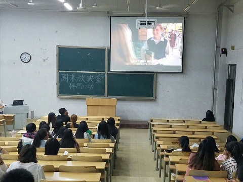 为进一步提高同学们的学习兴趣,丰富同学们的课余生活,普及英美文化习俗。5月12日,外语系分别于1号教学楼107教室和309教室举办“周末放映室”电影鉴赏活动。2016级全体学生参加此次观影活动,辅导员马盛楠指导此次活动的进行。