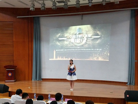为了培养同学们的口头表达能力,促进校园文化发展。5月23日,外语系于学院会堂参加金话筒主持人大赛决赛,我系2015级商务英语本科三班马宁同学参加此次大赛。