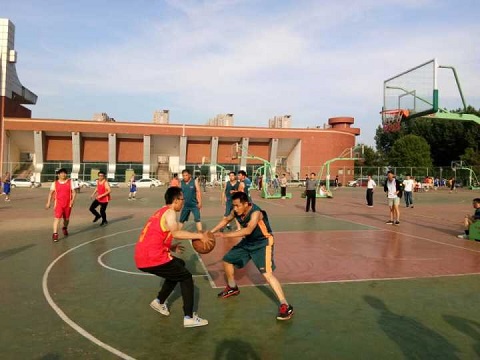 为丰富教师的文娱生活,提高教职工的身体素质,调节教师紧张的工作节奏5月31日,外语系于塑胶篮球场6号场地参加滨州学院2017年教职工篮球联赛,此次比赛我系迎战机关五代表队,由沙磊、王小强、朱运通等老师等组成的男子篮球队参加此次比赛。