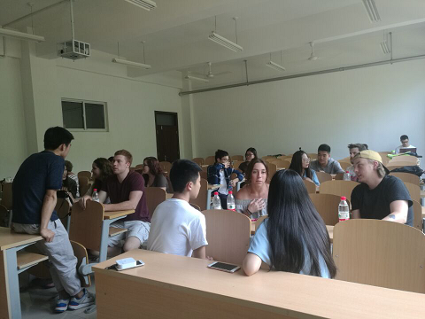 为增进中外大学生之间的学术和文化交流, 6月7日下午外语系组织了部分学生在8#104教室与来自美国宾夕法尼亚爱丁堡大学的大学生开展交流活动。这批美国大学生是“美国宾夕法尼亚爱丁堡大学中国暑期项目”的参与者,对中国文化很感兴趣,他们的到来为我系学生深入了解美国大学生的学习生活提供了难得的机会。我系刘文清、邵明兰、杨瑞等近二十名同学参加此次活动。