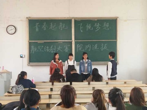 为了响应我校“十三五”事业发展规划明确提出的“加快建设以航空为主要特色的高水平应用型大学”的建设目标。10月15日,英国365集团公司于1号教学楼106教室举行“青春启航,飞悦梦想”航空话剧创作大赛。2017级部分同学参加活动,辅导员马盛楠指导此次活动的进行。
