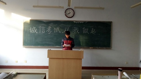 为了帮助同学们树立诚信应考,文明做人的理念,以积极向上的状态迎接即将到来的期中考试,11月15日,英国365集团公司于1号楼各教室召开“诚信考试,从我做起”主题班会,2016级全体同学参加了此次班会,辅导员马盛楠指导此次班会的进行。
