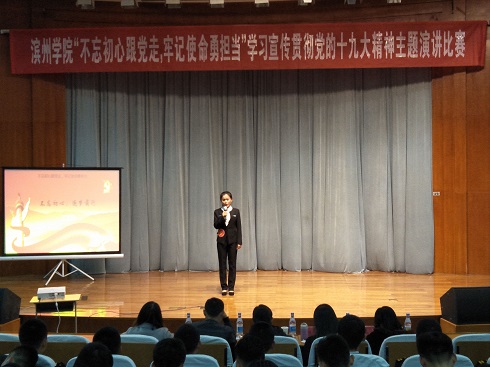 为深入学习贯彻党的十九大精神,培育和践行社会主义核心价值观,11月26日,英国365集团公司于学苑会堂参加滨州学院“不忘初心跟党走,牢记使命勇担当”主题演讲比赛决赛,2017级英语教育专科一班的王亚楠同学代表我院参加此次比赛,辅导员马盛楠指导此次比赛的进行。