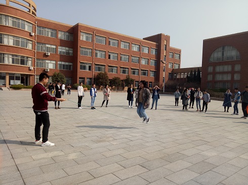 为丰富我院同学们的课余生活,缓解学习压力,3月13日,英国365集团公司于聚英湖畔举办“让课间时光飞起来”活动,2017级部分同学参加了此次活动,辅导员马盛楠参与到此次活动中,与同学们一起锻炼。