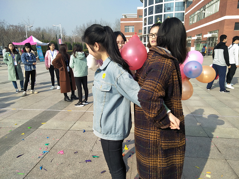 活动开始前,工作人员宣布了活动过程及注意事项,并抽签决定了各院系的上场顺序。在呼吁同学们积极参与活动,感受游戏乐趣后,主持人宣布活动正式开始。我院作为第四个出场队伍,在“来吧幸福”、“摆脱苦恼”、“幸福跳一跳”、“幸福大爆炸”四个游戏中都有出色的表现。其中在“幸福大爆炸”这一游戏中,要求两人一组,背对背,手挽手,呈背对背拥抱姿势夹破工作人员放在两人中间的气球。我院同学反应灵敏,团结协作,在一分钟内成功夹破了五个,挑战成功,获得了分别带有“小”、“幸”、“福”的三张贴纸。活动结束后,大家在广场合影留念。