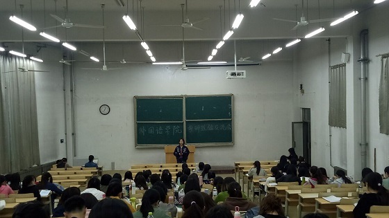 此次交流会特邀请2014级已被考研大学录取的部分优秀学子做讲解。活动伊始,葛雯师姐就为什么要考研以及如何考研、语言学文学学习等问题做了详细讲解并指出考研一方面是为了就业,同时也是为了改变出身,为自己更好的发展打下基础。同时对于如何考研,她分别从专业、英语、政治三方面进行了详细分析。接着,在现场提问环节中,同学们积极踊跃,争先恐后的提出心中疑问。优秀学子们采取“各个击破”的原则,有针对性地解决同学们的问题。整个交流会过程中同学们精神饱满,激情洋溢。最后,此次交流会在同学们热烈的掌声中走向尾声。