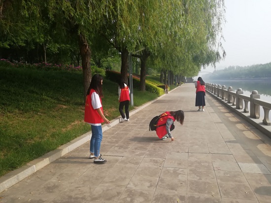 活动开始,同学们抵达滨城区新立河主题公园,在相关管理员的带领下,逐渐熟悉了工作内容。随后,工作人员将我院同学们分为两组,分别进行“道路清理”和“绿化保护”两方面的工作。由于在公共场所工作,清理道路的同学们在尽量不打扰行人的情况下,默默工作,但同学们内心热情似火,铆足干劲,本着“奉献,友爱,互助,进步”志愿服务精神,不怕脏不怕累,认真完成自己的任务。保护绿化的同学用手认真捡拾绿化带里的垃圾,同学们生怕伤到草木,认真且谨慎地做着服务,爱护每一棵需要发芽的小草,所有同学都专注于自己的工作。最后,所有参加活动的同学在公园桥上合影纪念。