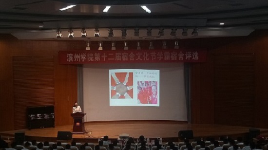 活动开始,先由主持人上台致开场词,并介绍此次评选活动的具体规则。随后,评选正式开始,各院派代表按顺序上台对本寝的PPT或视频进行讲解。我院代表以流利的英文开场,向大家展示了526宿舍这个精彩的大家庭,答辩人在讲解中说道“寝室是一个集体,构成了无比强大的力量,但同时,寝室中每一位成员都是强大,寝室的强大和每一位成员都是密不可分的。”最后,评委老师对各位选手的答辩进行了点评,并宣布了本次评选活动的成绩,我院526宿舍以优异的表现获得优秀奖。