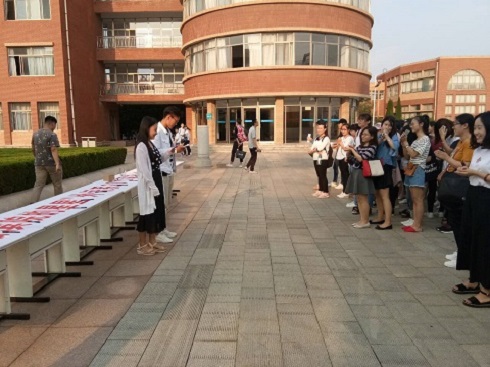 为给毕业生留下美好的回忆,丰富大学生活,6月14日,外国语学院于1号教学楼门口举办“留给滨院的星星”毕业生许愿星封存活动,英国365集团公司2018届全体毕业生参加此次活动,辅导员马盛楠在现场观看此次活动的进行。