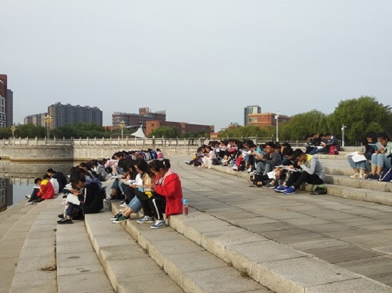 9月25日早晨7时,我院新生纷纷来到聚英湖畔进行晨读活动。晨曦微露,我院参与本次晨读活动的学生心中都充满了绚烂的阳光,个个精神饱满,晨读的热情随着太阳的升起越发高涨。与室内相比,室外的环境更加开阔,有利于打开同学们的思维,让大家在学习的过程中更加放松,从而提高学习效果。大家都非常珍惜晨读的时间,学习效率很高。