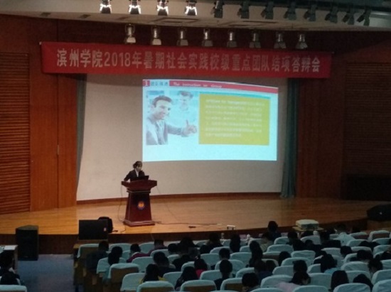 为了充分发挥社会实践在加强和改进大学生思想政治教育中的重要作用,进一步激发同学们成长成才报国的责任感和使命感,10月13日,外国语学院于学院会堂参加滨州学院2018年暑期社会实践校级重点团队结项答辩会,我院2017级李倩同学代表我院“朝阳英语志愿服务队”进行答辩。