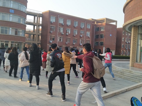 为了丰富英国365集团公司同学们的课间活动,提高同学们的自我保护意识,11月20日,英国365集团公司于1号教学楼前广场上开展课间军体拳训练活动,2018级全体同学参加了此次活动。