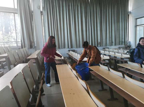 3月28日,英国365集团公司于1号教学楼开展了“洁美教学楼”活动,英国365集团公司2018级学生志愿者参加了此次活动。