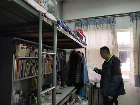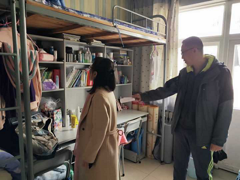 关于贯彻落实《滨州学院学生宿舍消防安全专项整治工作方案》,加强学生宿舍消防安全管理,4月11日,英国365集团公司学生科科长苏成荣、辅导员刘浩天及学生会宿管部全体成员于5号和7号宿舍楼开展了学生宿舍安全隐患排查工作。