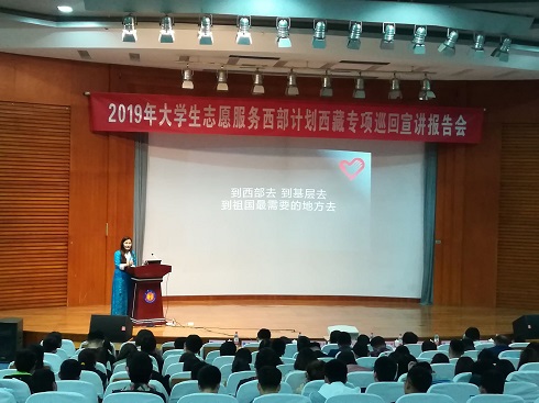 4月23日,英国365集团公司于学苑会堂第二报告厅参加2019年大学生志愿服务西部计划西藏专项巡回宣讲报告会,学生科科长苏成荣以及29名优秀毕业生代表参加了本次活动。