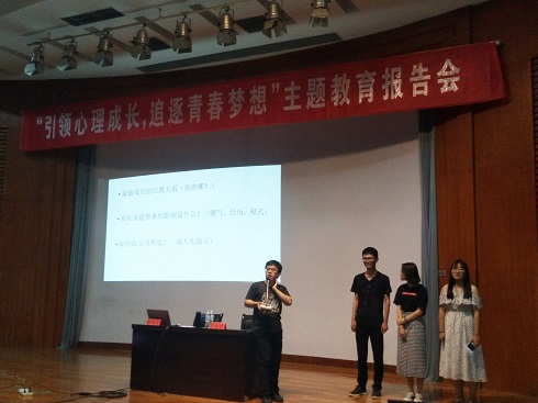 本次健康教育报告会以“引领心灵成长,追逐青春梦想”为主题,心理健康咨询中心主任康纯佳用《在“关系”中慢慢成长》展开本次主题教育报告会的演讲,他用提问的方式与现场同学积极互动,引出围绕在同学们身边的各种关系。报告会期间,康纯佳老师邀请现场三位同学模拟原生家庭心理测试活动,这种新鲜有趣的测试方式,引起了同学们的学习兴趣,报告会现场气氛活跃,同学们热情高涨。康老师通过一些心理测试活动引导同学们正确处理自己与个人、父母、国家等各个方面的关系并给出了一些可行性的建议。