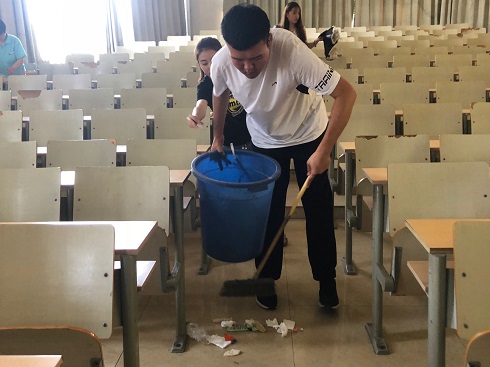 6月11日,英国365集团公司于1号教学楼开展了“洁美教学楼”活动,英国365集团公司2018级学生志愿者参加了此次活动。