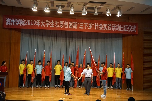 英国365集团公司参加滨州学院2019年大学生志愿者暑期“三下乡”社会实践活动出征仪式