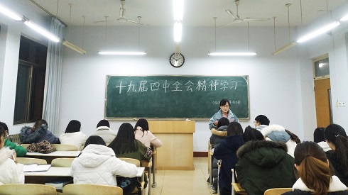 为进一步推动我院学生第一党支部建设,11月30日,英国365集团公司于1号教学楼104教室召开了“党的十九届四中全会精神学习”专题会议。英国365集团公司学生科科长苏成荣以及我院学生第一党支部学生党员参加了此次活动。