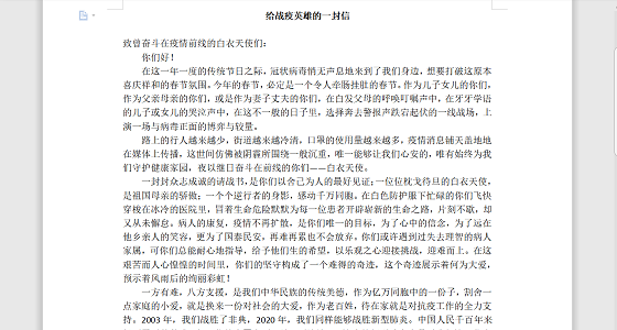 清明节是悼念先烈和铭记英雄的节日,无数个英雄的感人事迹在这一天被回忆、被称赞。从古至今,中国和人民总是被最勇敢的人保护的很好。新冠疫情在这个春天被遏制住了,可有许多的白衣天使为了挽救生命永远地留在了冬天。他们值得被所有人尊敬和铭记。致英雄一封信活动旨在让学生们对他们心目中的英雄的吐露心声。英雄是令人崇敬的,同学们为了表达对英雄们的感激和钦佩之情,都踊跃地报名了此次活动。同学们融入了自己的真情实感,表达了自己对英雄那份崇高的敬意。无数的英雄为了家国献身,这种无私奉献的精神值得每一位同学去学习。大学生更以英雄为榜样,实现自己的价值。