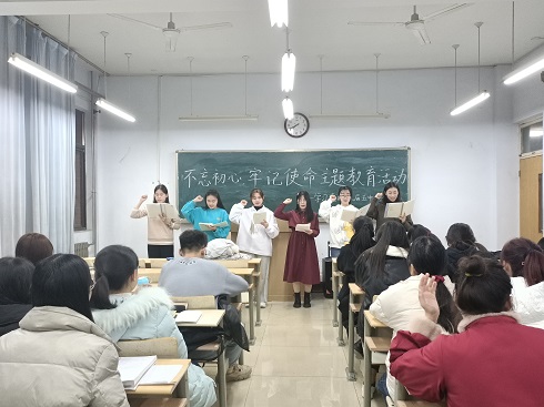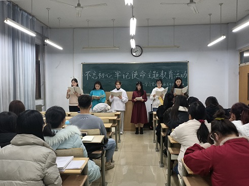 活动第二项,六位学生代表为大家带来了诗歌朗诵《看今日之中国》。在抑扬顿挫,铿锵有力的朗诵声中,青年党员以及青年代表更加真切地领会了青年的历史责任与使命担当,起到了润物细无声的作用。