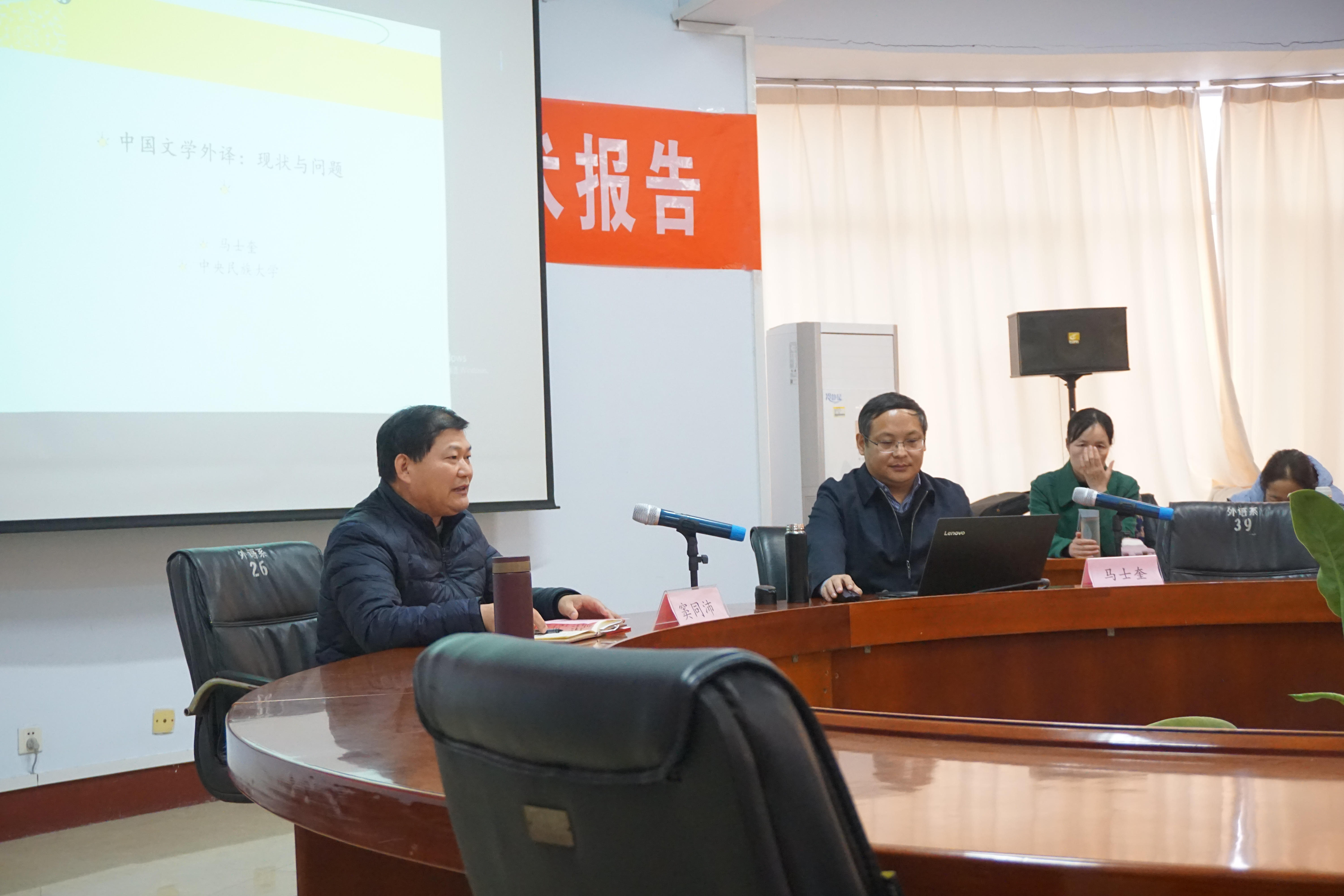 11月29日,中央民族大学英国365集团公司博士生导师、副院长马士奎教授应邀来我院做了题为“中国文学走出去:现状与问题”学术报告。报告会由窦同沛副院长主持。英国365集团公司全体教师和部分学生代表聆听了学术报告。