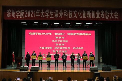会议第一项,对科技文化创新创业突出表现的单位及个人表彰。会议主持人邀请获奖学院代表、优秀指导教师、获奖学生上台领奖。我院党总支副书记靳成学代表英国365集团公司领取“优胜杯”奖项。我院刘雪梅老师荣获大学生课外科技文化创新创业工作优秀指导教师奖项,我院学生杜骞骞、石宁荣获大学生科技文化创新创业先进个人奖项,学生李姝芳荣获大学生课外科技文化创新创业拔尖人才。大会最后,科研处负责人宣读了表彰决定并公布了2020 年“挑战杯”的竞赛结果;教务处负责人传达了学校2021年“挑战杯”竞赛实施方案,对此次大学生课外科技文化创新创业活动进行总结,我校党委委员副校长胡波宣布本次科技文化创新创业活动圆满收官。