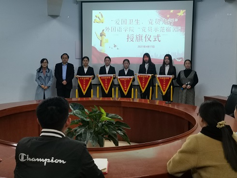 为营造积极健康的校园文化环境,促进宿舍文明建设,充分发挥学生党员的模范带头作用,4月17日晚,外国语学院在1号教学楼201会议室举行学生党员示范宿舍授旗仪式。学院党总支书记王保中老师、学生科科长苏成荣老师、辅导员张瑾老师出席,全体学生党员参加。