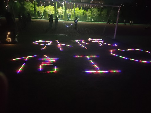 春意盎然,共赴歌约。活动开始前,同学们领领取荧光棒和评分卡片,在观众区席地而坐。主持人简单介绍活动规则,歌会正式开始。歌会中,既有曲风朴素,朗朗上口的民谣《鼓楼》,也有现代流行英文歌曲《love story》,更有流行华语歌曲《水星记》、《等你下课》。现场气氛逐步推向高潮,同学们不时跟着旋律哼唱。聚是一团火,散是满天星。同学们热情高涨,手中挥舞着荧光棒,为歌会助兴,顿时现场一片星光海洋。