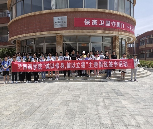 本次活动以“诚以修身,信以立德”为主题。活动现场,主持人向同学们宣读诚以修身,信以立德”倡议书,号召同学们在学习生活中时刻严格要求自己,树立诚实守信的个人形象,坚持诚信处事原则,端正诚信求知态度,拒绝考试作弊,诚信应考,以实际行动向社会证明自己是一名优秀的大学生。随后,同学们手持记号笔,认真地在横幅处签下自己的名字,一笔一画郑重写下了对诚信的承诺。
