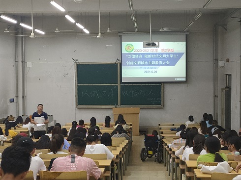 此次会议以“立德修身,做新时代文明大学生” 为主题召开。会议伊始,各辅导员向同学们介绍了国家级文明城市的背景知识,告诉同学们国家级文明城市是一个城市文明程度和市民素质的重要体现,号召全体同学积极参与文明校园的创建。并对学习、宿舍卫生、纪律等文明行为进行规范。会议最后,辅导员也跟同学们强调了理性消费的重要性,远离网贷,正确认识网络购物平台促销活动,理性消费,不过度消费,做理性消费者。