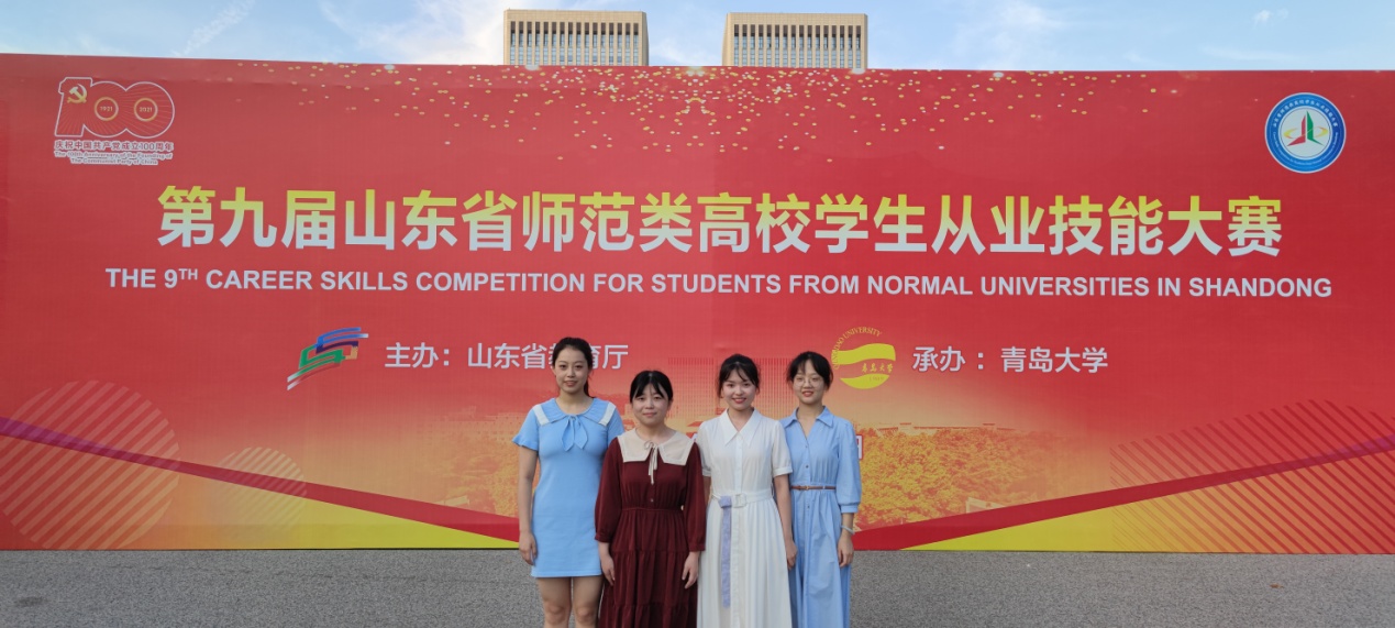 在日前结束的第九届山东师范类高校学生从业技能大赛中,我院四名学生参加了省级决赛,其中,曹春旭获小学学段一等奖;吴玉翠、唐琪获初中学段一等奖;徐子晴获高中学段二等奖;王小强、刘雪梅、王绪东三位老师获优秀辅导教师称号。
