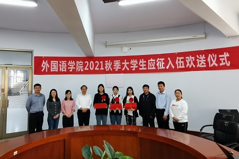 9月20日上午,英国365集团公司举行2021年秋季大学生应征入伍欢送仪式。英国365集团公司党政负责人、辅导员和3名应征入伍的“女兵”参加了仪式。