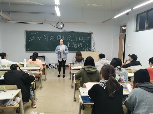 会议伊始,各班班主任向同学们提问24字核心价值观,并强调,全体同学必须认真学习社会主义核心价值观的内容,并牢记于心。随后,各班班主任通过引导学生进一步学习社会主义核心价值观、公民的基本道德规范、高校学生行为准则以及作为滨州市民的公德、生活、文明出行等方便的要求和规范,引导我院学生认识创建全国文明城市的意义和目的。教育学生从我做起,做文明修身的大学生。当前的疫情形势依旧严峻,为持续加强疫情防控教育,班主任老师教育学生严格遵守疫情防控常态化的有关规定,密切关注国庆节假期返校后学生健康状况,并组织学生积极参与爱国卫生运动,养成健康生活习惯,形成绿色、环保、文明的生活方式。会议结束后,同学们纷纷表示,结合滨州创建全国文明城市活动,作为青年学生要从我做起,在创城过程中积极发挥作用。积极践行社会主义核心价值观,从生活、学习、志愿者服务等全方位投入到创建全国文明城市的步伐当中。