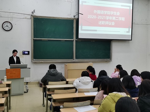 述职评议大会上,学生会主席团成员和各工作部门负责人围绕思想政治、道德品行、学习情况、工作成效、纪律作风五个方面总结了学生会开展的工作,对工作中存在的问题与不足认真剖析,明确学生会是全心全意为同学们服务,代表广大同学利益的学生组织,是联系学生与学校的桥梁和纽带,是培养大学生全面成才的重要载体。同时,各学生干部对未来的学生会工作提出规划。结合述职情况,评审组成员对学生干部进行了量化考核,从述职内容、日常表现、述职表现三个方面进行全面客观综合打分。最后,苏老师对述职评议会议进行总结,对学生会一学期以来工作所取得的成绩表示肯定,对工作人员付出的努力表示感谢。同时对学生会提出希望和要求,希望学生会以述职为契机,总结好的工作经验,进一步改进工作方式方法,继续为同学们办实事。