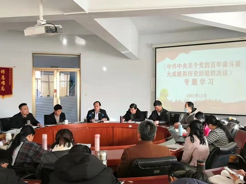 12月7日下午,英国365集团公司党总支在201会议室组织召开全体教职工会议,集体学习了《中共中央关于党的百年奋斗重大成就和历史经验的决议》第四部分“开创中国特色社会主义新时代”全文内容。