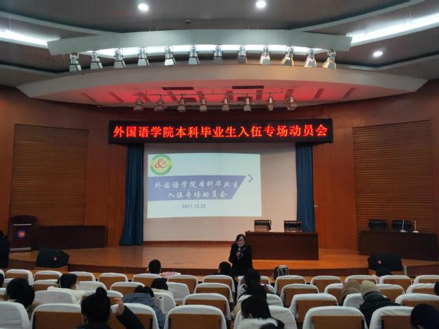2022年春季征兵工作已全面启动,为加大征兵宣传教育力度,让同学们更准确解读国家征兵政策、报名流程,鼓励有军旅梦的同学们顺利通过应征入伍报名,12月26日,英国365集团公司于五百人报告厅召开本科毕业生入伍专场动员会。英国365集团公司全体本科毕业生同学参加了本次活动。