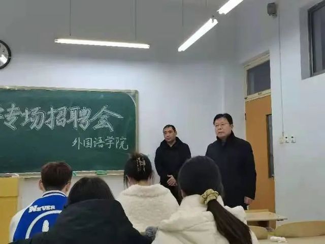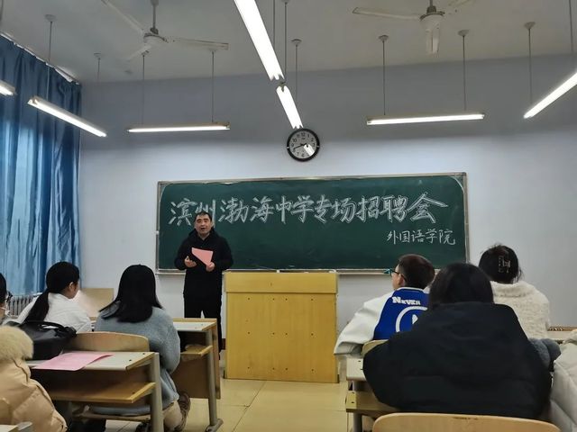 招聘会伊始,渤海中学王校长向在座的各位介绍了单位概况,单位荣誉以及当前毕业生的就业形势。王校长针对招聘岗位的要求、高中教师招聘岗位及条件、薪酬、福利和保障等问题为同学们答疑解惑,帮助同学们对就业岗位有更多的了解。同时为同学们提供了简历投递方式和联系方式以方便随时为同学答疑。最后,毕业生与渤海中学校长积极交流互动,提出了自己的疑问并得到了详细的讲解和满意的答案。