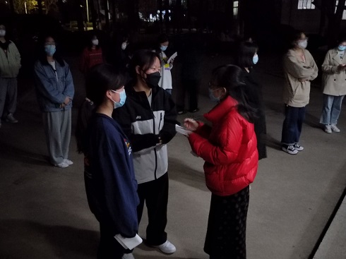 会议伊始,苏成荣老师就学生晚间住宿检查工作进行了简要总结,提出在学生住宿检查工作过程中出现的问题,重点对学校封闭管理期间进一步规范学生住宿检查提出了明确要求。她提出所有工作人员在检查晚间住宿过程中务必认真负责,严格落实新要求,确保所有同学安全就寝。苏老师指出,检查人员要有担当,一旦发现违反晚间住宿规定的学生,检查人员要大胆、立即上报辅导员老师,切实履行维护学生安全健康的责任。若出现学生在22点30分后因特殊原因无法到达公寓或出现特殊情况确需出公寓,务必第一时间电话联系辅导员老师,由辅导员老师与值班楼管讲明原由后方可允许学生外出。同时要求学生如实填写《学生公寓2021-2022学年第二学期早出晚归统计表》上报公寓管理中心备案。最后,苏成荣老师肯定了告知人员在疫情特殊时期期间检查晚间学生住宿情况工作中的辛苦与努力,叮嘱同学们工作过程中一定做好个人防护,并传递了“战疫必胜”信念,鼓励同学们积极为学校疫情防控工作贡献一份力量。