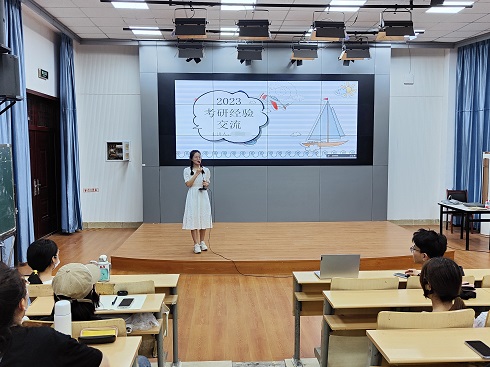 会上,经验分享者分别从自身考研经历出发,围绕如何选取专业和院校、制定复习计划、调整心态以及复试中的注意事项等方面开展。在学习方法上,她们通知历年真题解析,强调了日常练习的重要性,将理解、记忆、练习、背诵、知识点串联。在考研学校和专业选择上,要从自身的基本情况出发,根据自身特点,选择考研学校及专业,并强调要做整体规划、提早准备、做好选课安排。另外,分享嘉宾为大家推荐了备考书籍。建议同学们在积极备考的同时,也要及时了解学术动态,丰富有关报考方向的知识。最后,她们提到,良好的心态至关重要,鼓励大家以平稳的节奏与平和的心态迎接考试,戒骄戒躁,以最佳的精神面貌考出真实水平。整个交流会现场激情洋溢。同学们收获满满,纷纷表示对考研复习更有计划、充满信心。