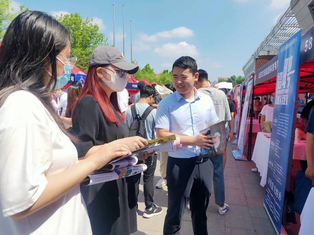本次招聘会特邀请多家企业来校招聘,为2022届毕业生提供多种多样的就业机会。招聘会开始后,同学们有条不紊的进入招聘会,了解此次招聘会的的基本概况及每个企业简介。招聘单位通过发放宣传册、面对面交流的方式向同学们介绍公司的概况、职业发展与人员需求。现场秩序井然、人头攒动,热烈的气氛带动了广大学子的就业积极性。