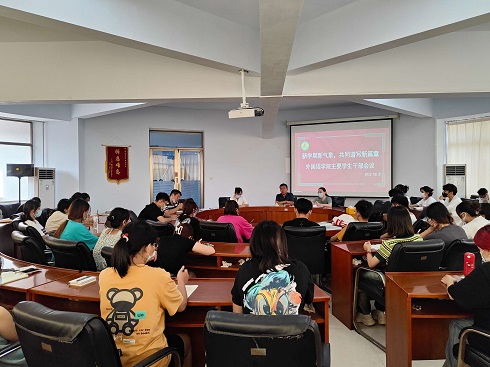 会议伊始,苏成荣老师表达了对全体学生干部在2021-2022学年学生工作的肯定,感谢同学们对学院工作的付出和贡献。随后,苏老师分别对各班班级主要学生干部及学生组织学生干部进行工作安排。对于班级主要学生干部,要做好返校统计工作、疫情防控工作及心理普查等工作;对于学生组织学生干部,各部要及时调整工作状态,按时完成迎新准备、学生宿舍安全排查及消杀等工作。最后,苏老师表示,新学期里,各主要学生干部要继续努力,期望大家能够开拓新思路,提出新方案,推动我院工作的持续发展,新学期,新起点,希望大家共同建设我院更好的未来!随后,张瑾老师对班级干部以及各部门工作进行具体部署。首先,各班要建立志愿服务小组,为隔离区同学做好饮食等服务保障工作;其次,各班级干部要积极帮助宿舍楼内外的宿舍搬迁,发挥领头作用;最后,张老师就学风、考勤以及征兵做出简要介绍。会议最后,曲书记分享了自己的学生干部经验,他表示这份经历在很大程度上锻炼了自己,为以后的工作打下了基础;其次,曲书记指出,身为主要学生干部,要比别人更自律,比别人奉献更多,做好表率,成为老师与学生的桥梁与纽带,凝聚学院力量;紧接着,曲书记对当前疫情工作进行了简要解读,要求学生干部要着眼于远久利益,理解支持学校防疫工作,并且要在防疫的同时,养成遵循课堂纪律,注重卫生的好习惯;最后,曲书记表示要注意学生工作的方式方法,在坚守底线的同时,以身作则。